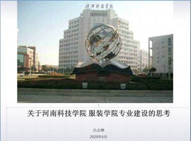 为了进一步推进停课不停学、线上精品课程建设、服装专业建设等教学工作,提高我院人才培养质量,服装学院于6月15日下午15:30,在钉钉平台召开了“关于河南科技学院服装学院专业建设的思考”专题报告会,报告人是我院特聘的教学指导专家,杭州职业技术学院白志刚教授。报告会由服装学院院长常丽霞主持,服装学院全体教师聆听了报告。