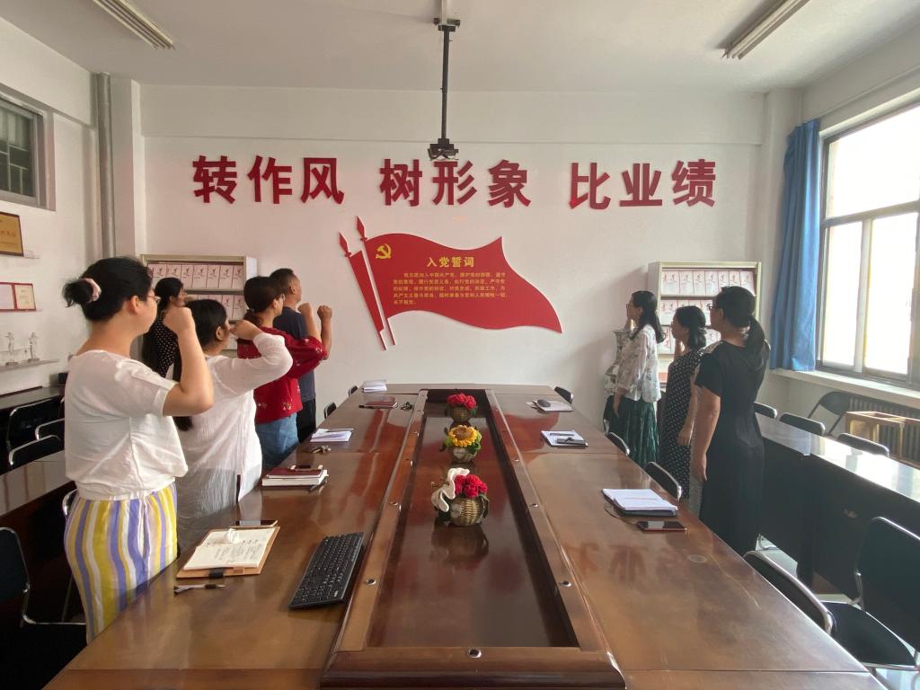 全体教工党员认真观看学习,并交流了感受。观看微党课结束后,院长常丽霞发表讲话,强调一名党员就是一面旗帜,要发挥榜样领先作用。随后,党委副书记王琳带领党员重温入党誓词。