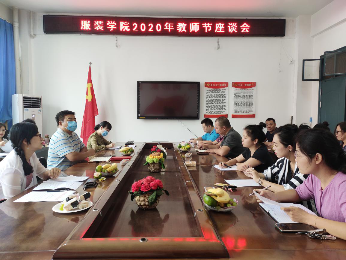 9月10日下午,服装学院在204会议室召开了主题为“立德树人奋进担当,建设双高筑就梦想”的教师节座谈会。学院党委书记郭建勋、副书记吴峰、副院长李爱英出席会议,学院全体教工参加座谈,座谈会由郭建勋主持。
