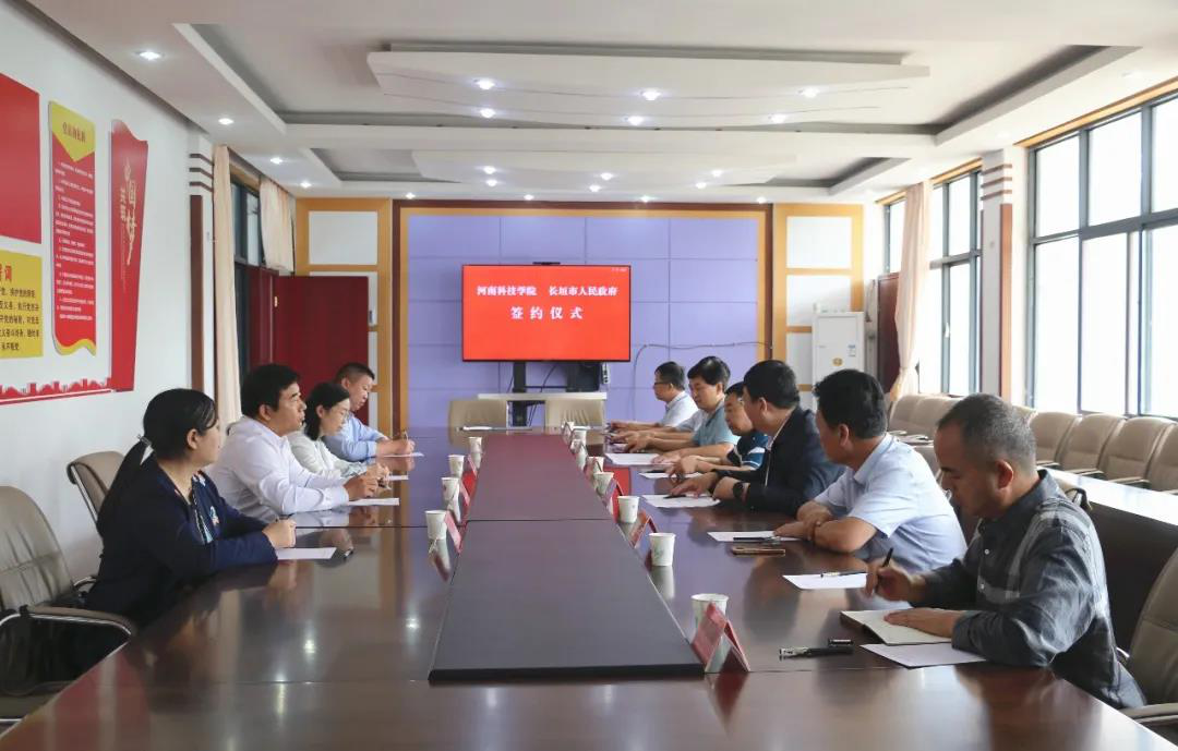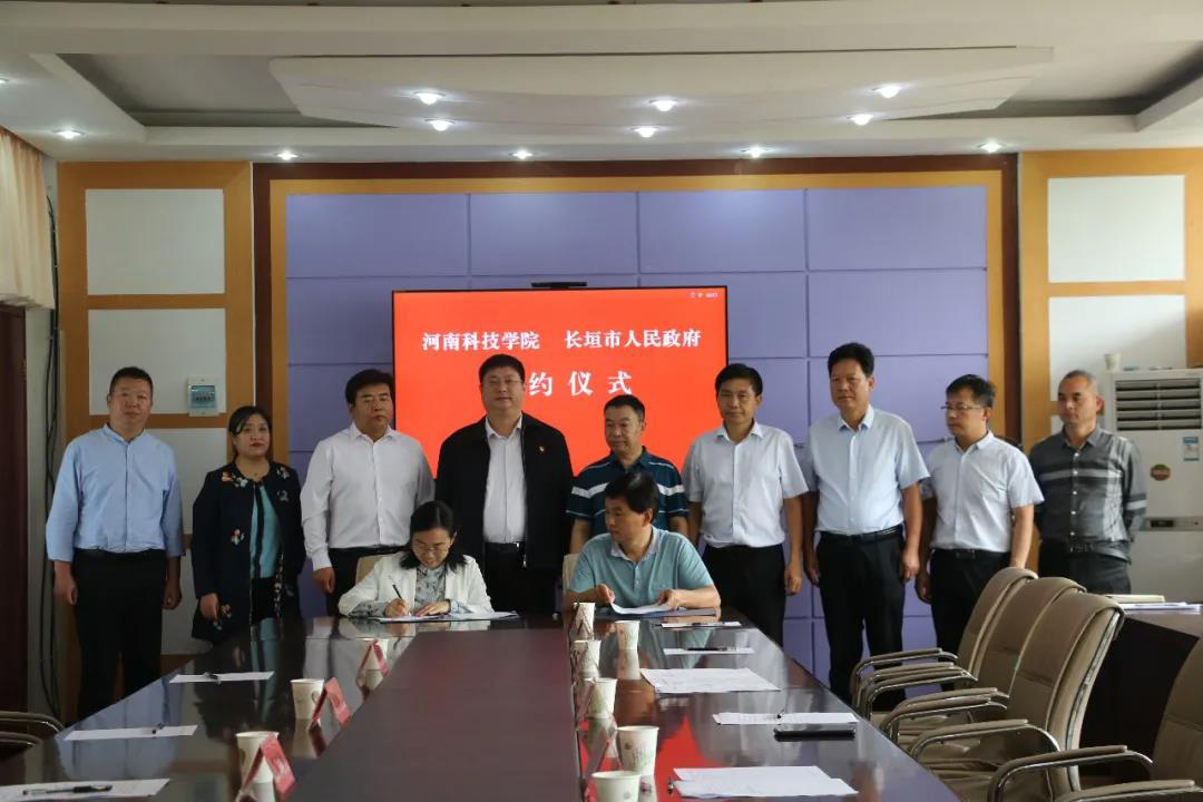 9月25日上午,由河南科技学院与长垣市人民政府合作举办长垣职业装学院的签约仪式在长垣职业中专举行。河南科技学院服装学院党委书记郭建勋、院长常丽霞、副院长王式竹,长垣职业中专校长史振彬,长垣市委常委、副市长郭立、刘文君等出席了签约仪式。