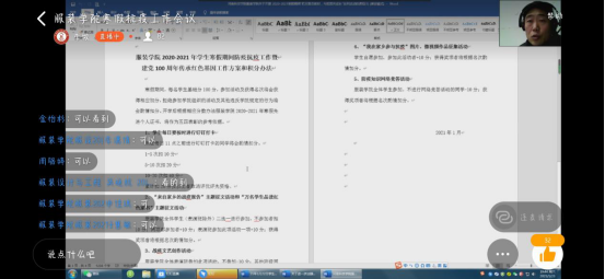 为更好的落实校团委、学生处做好寒假期间学生工作的部署,服装学院团委结合当前疫情防控情况和学院学生工作实际,1月23日,召开寒假线上学生工作会议,服装学院全体学生干部参加了会议。团委副书记李牧主持会议。