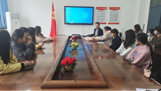 3月19日上午,离退休职工管理处党总支书记马新岭在11号楼204会议室,作为机关联点人员,为服装学院联点班级的同学们讲授新学期“开学第一课”暨党史宣讲。