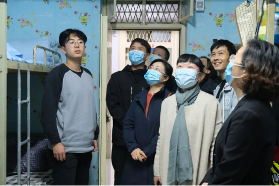 为更好地了解新生住宿环境和适应大学生活的情况,10月13日晚,院长常丽霞,党委副书记吴峰,副院长王式竹、商亚敏,办公室主任张纪文及2021级新生辅导员王茹洁前往新生宿舍,亲切问候新生,深入了解入住情况。