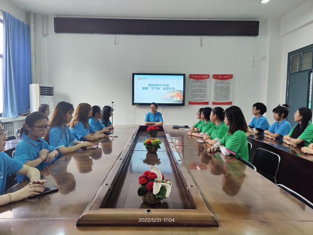 近日,服装学院团委在11号楼204会议室举办2022年暑期“三下乡”社会实践活动启动仪式。服装学院团委书记梁瑞,辅导员刘颖莹出席会议,校级团队和院级团队负责人及学生代表参加启动仪式。