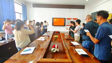 在学院党委书记郭建勋带领下,全体教师举起右手,面向国旗庄严宣誓:忠诚党的教育事业,遵守教育法律法规,履行教书育人职责,引领学生健康成长,做到有理想信念、有道德情操、有扎实学识、有仁爱之心,为教育发展、国家繁荣和民族振兴努力奋斗!