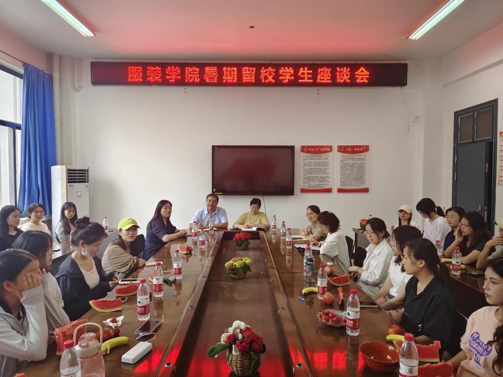 7月13日下午,服装学院开展暑期留校学生座谈会暨“暑期送清凉”活动,服装学院在校领导班子、教师代表、留校考研学生、研究生到场参加。
