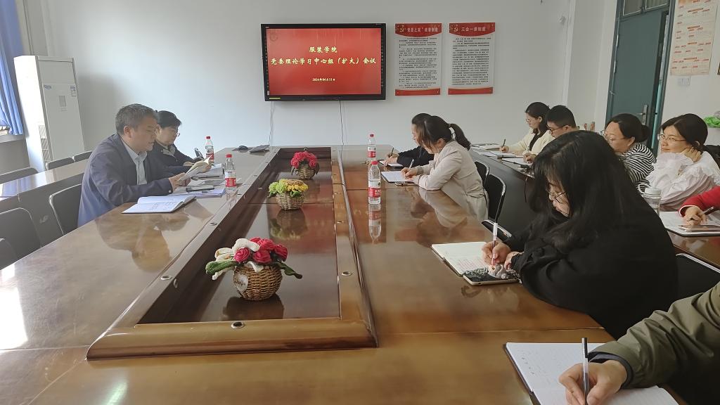 4月11日,服装学院在11号楼204会议室召开党委中心组扩大学习会议。学院全体中心组成员和科级干部到场参加。会议由院党委书记游红伟主持。