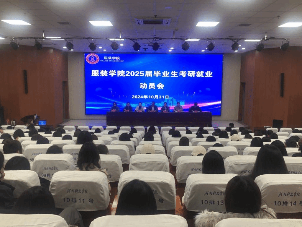为了帮助2025届毕业生树立科学的就业观,明晰考研目标,推动毕业生高质量就业。服装学院于10月31日在新图书馆一楼报告厅举行2025届毕业生考研就业动员会。服装学院党政领导班子、全体辅导员、教师代表、09级优秀毕业生李丽以及2025届全体毕业生参加此次会议。会议由学院党委副书记高莉主持。