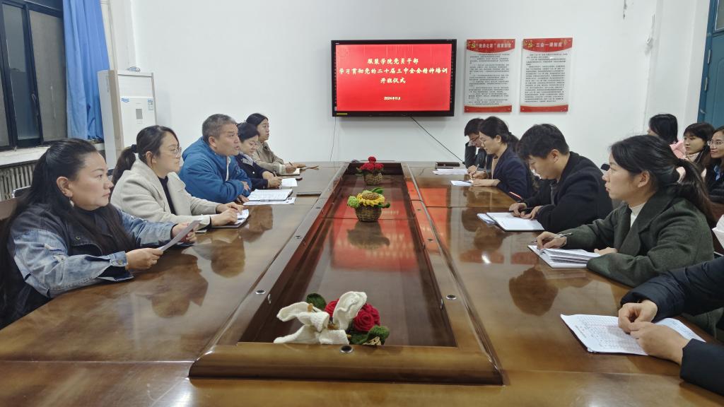 11月15日,服装学院在11号楼204会议室举行了党员干部学习贯彻党的二十届三中全会精神培训开班仪式。服装学院党政班子成员、科级以上干部及全体党员教师参加本次会议。会议由学院党委书记游红伟主持。