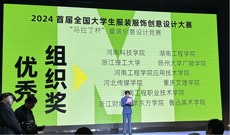 近日,由中国纺织服装教育学会与浙江省纺织工程学会主办的2024首届全国大学生服装服饰创意设计大赛“马拉丁杯”童装创意设计竞赛在浙江理工大学成功举办。我校荣获优秀组织奖,由我院李爱英老师指导,李亚雯、胡颖辉同学的作品《猜猜我有多爱你》荣获三等奖。