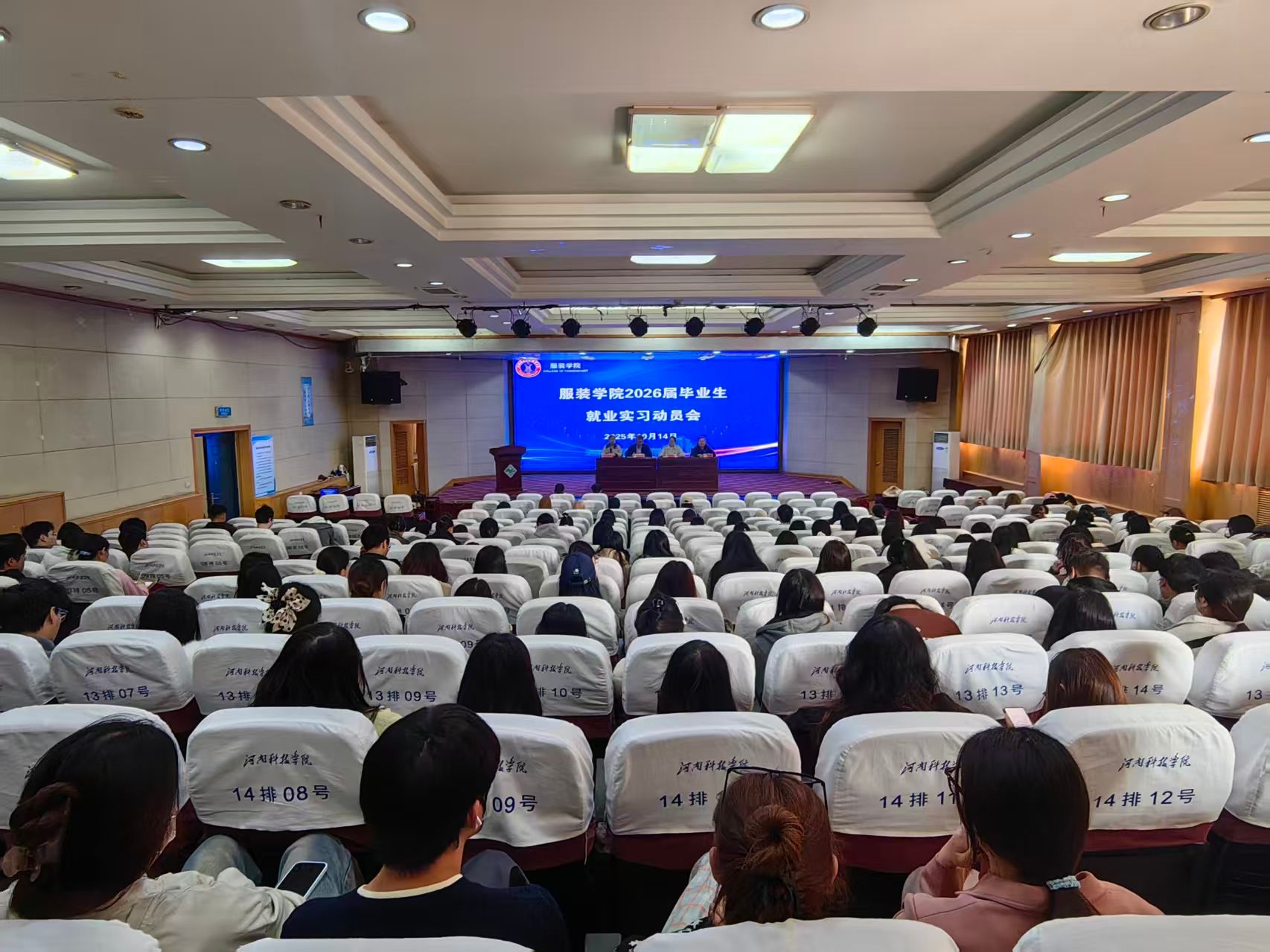 为提高人才培养质量,统筹推进2026届毕业生就业和实习工作,促进毕业生高质量充分就业,10月14日上午,服装学院在图教201报告厅组织召开2026届毕业生就业实习动员会。学院党政领导班子成员、辅导员、教师代表以及2026届全体毕业生参加会议,会议由学院党委副书记高莉主持。