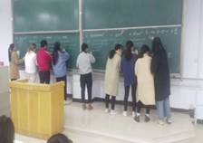 张清山老师展示了极值原理一节的内容,在课中让学生参与推导过程实现师生互动。王宪军老师展示了常微分方程中李雅普诺夫方法一节的教学设计,通过让学生自主联系前述内容引导学生参与课堂教学,在课中通过时时互动师生共同推进课程内容进程。杨小飞老师展示了高数D的反常积分一节课,杨老师一直重视课前十分钟的学生做题大比拼,将课前十分钟纳入平时成绩记录,鼓励学生积极参与。学生充分解题后,教师逐题讲解,学生自由发言,评价板书过程。对学生程度与课程目标的矛盾,杨老师通过适当降低题目难度及讲解切入点的具体做法解决,以方法学习为重,辅以练习,加强基本知识讲解,强调学生自主练习。