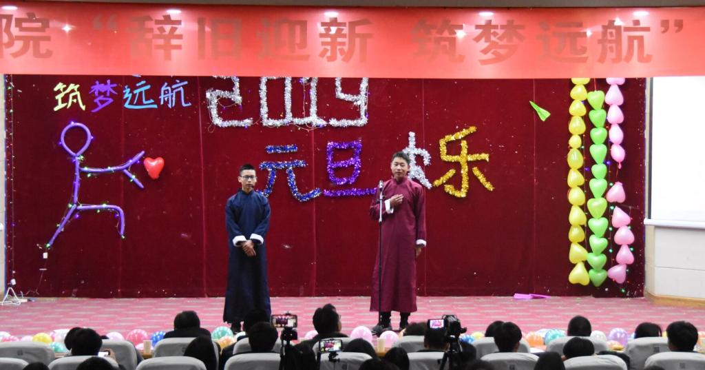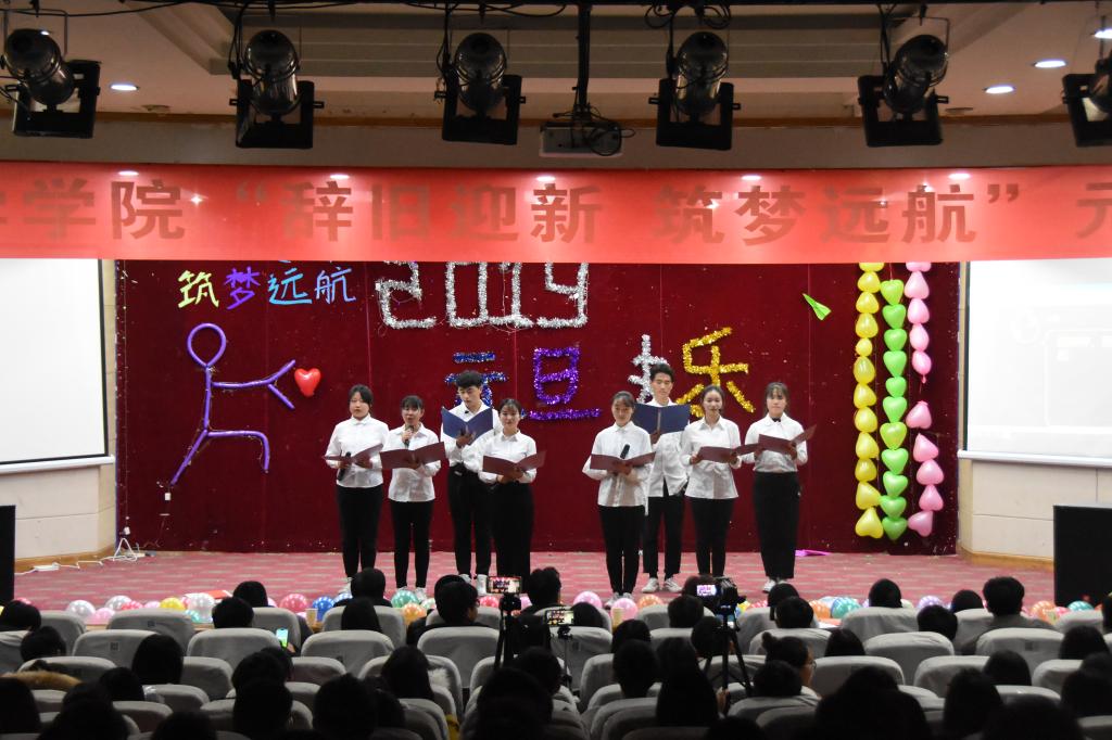 12月25日晚上,由数学科学学院举办的以"辞旧迎新,逐梦远航"为主题的元旦晚会在图教201隆重举行。院党委书记任建成、院长张万芹、副院长马宝林,副处级党建组织员邵帅及教师代表、辅导员和学生代表250余人参加活动。流光溢彩,鼓乐齐鸣,欢歌笑语,辞旧迎新。在体育部健美操队以及文工团爵士舞队为大家带来的舞蹈串烧中元旦晚会正式开始。