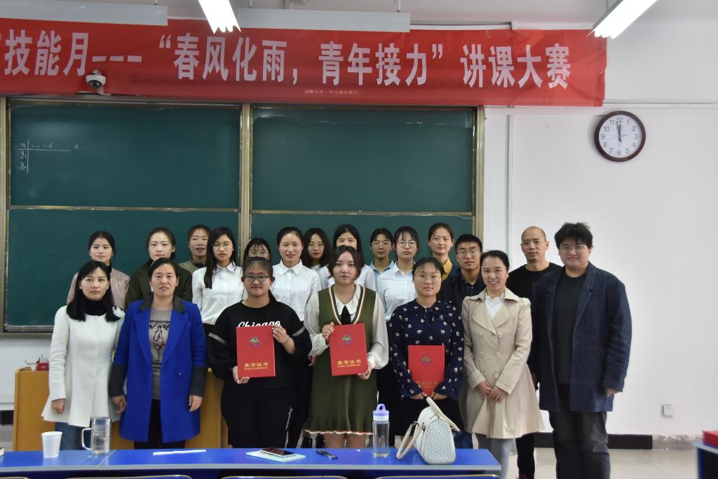 为进一步增强师范生实践应用能力和创新能力,彰显师范特色,强化学生教学技能。4月13号上午,数学科学学院于八合二教室举办了以“春风化雨,青年接力”为主题的第五届师范技能月讲课比赛。我院教师刘娟、陆博、冯玉玲、谭小燕出席本次比赛并担任评委。