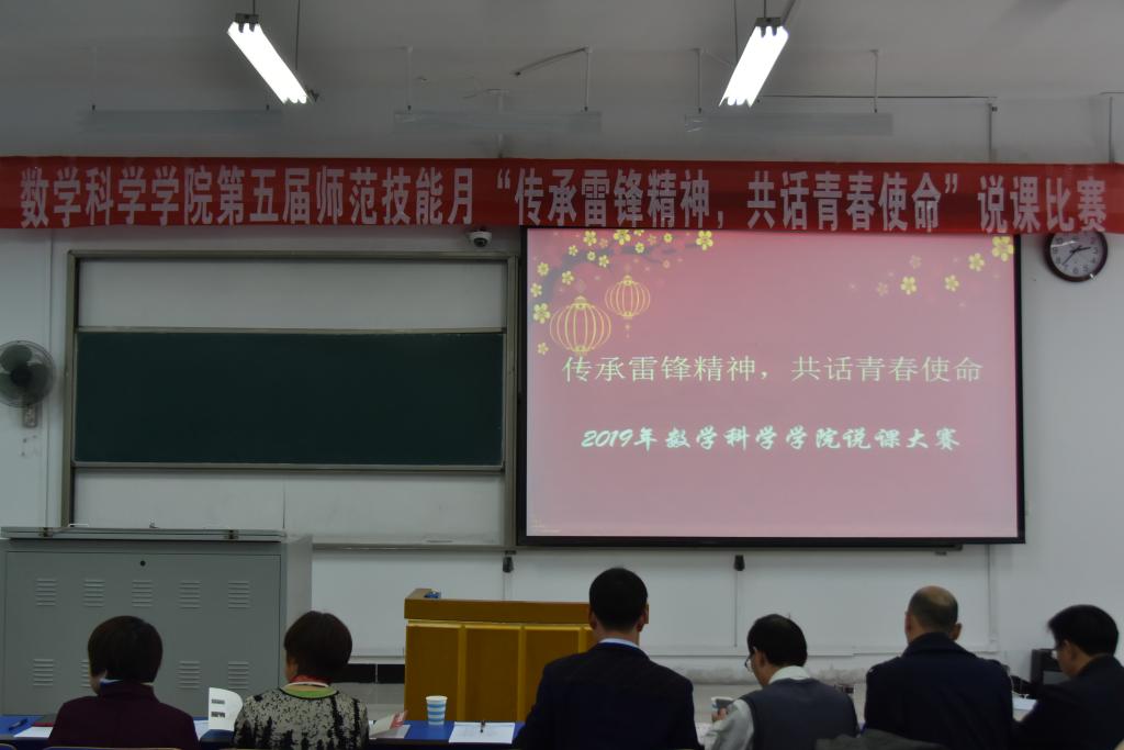 4月30日下午,数学科学学院第五届师范技能月“传承雷锋精神,共话青春使命”说课比赛于九合一成功举办。本次比赛特邀教务处副处长古乐声、科技学院附属小学校长郭斐杰、师大附中、我校双导师张存敬、铁一中、我校双导师王银尚、数学科学学院院长张万芹、副院长董瑞、马宝林、校内指导教师刘娟担任评委,我院师生200余人观看本次比赛。