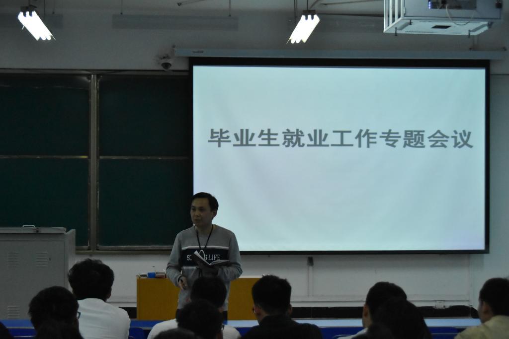 在毕业生就业工作专题教育会议上,贾老师对当前大学生就业情况提出了自己的建议,他告诫同学们要认清就业形势,培养自我意识,把握好就业机会并且要认真做好个人简历。