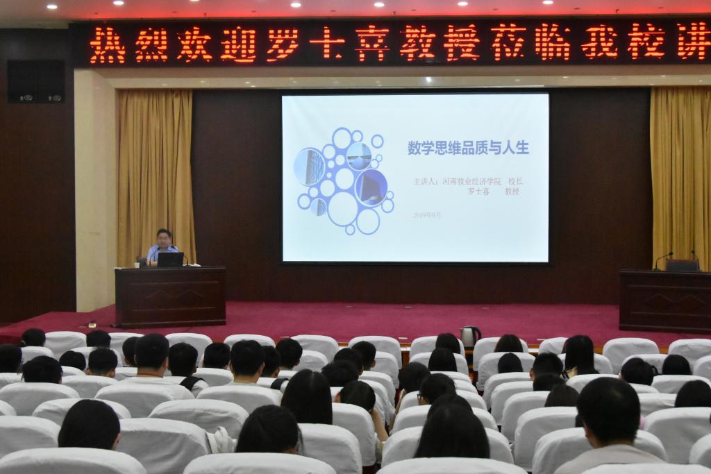 6月3日下午,河南牧业经济学院校长罗士喜教授应邀到我校讲学。在行政楼308会议室,他以《数学思维品质与人生》为主题做了一场别开生面的报告会。数学科学学院师生代表260人参加本次报告会。报告会由张万芹院长主持。