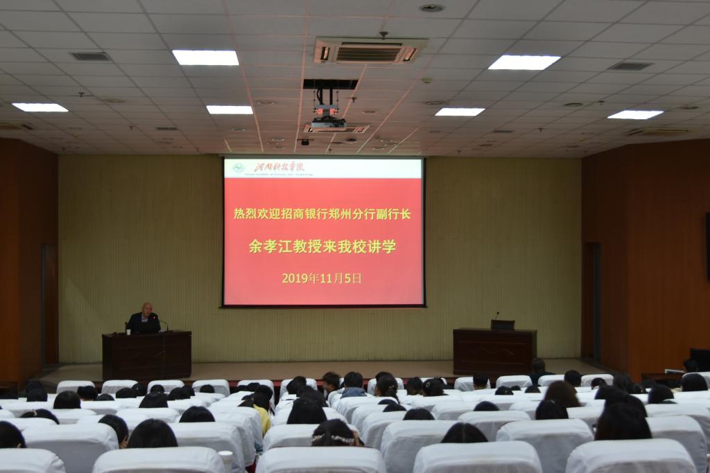 11月5号下午,招商银行郑州分行副行长余孝江教授应我院之邀在新图书馆一楼报告厅以《面对变化,我们如何选择》为题进行报告。数学科学学院师生代表240余人参加本次报告会。