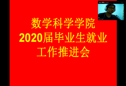 为扎实推进数学科学学院疫情防控期间的毕业生就业工作,为毕业生就业提供指导帮助。4月27日,数学科学学院召开2020届毕业生就业工作推进会。院团委书记贾普君、学生干部代表参加会议。会议由院团委副书记刘喜明主持。