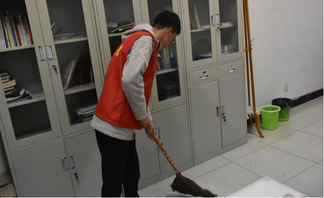 本次活动主要对我院的办公和教学区域进行卫生清洁。活动中,每位志愿者都穿上带有学院标志的红马甲志愿服,3-5人一组,分别对办公室、会议室、实验室,宣传栏等地方进行打扫清理。