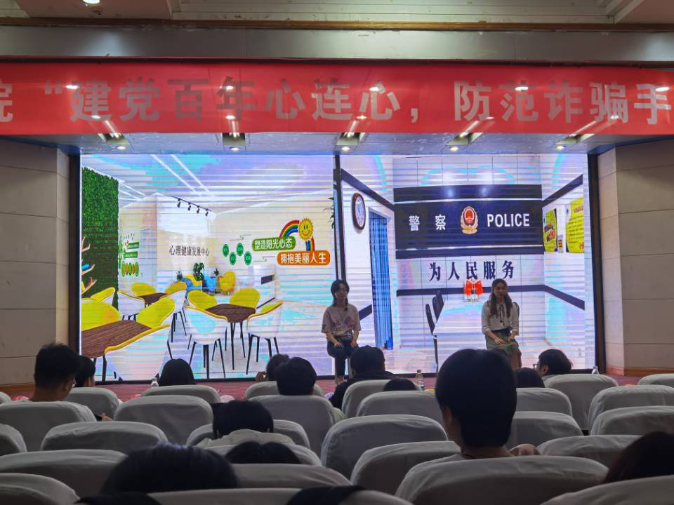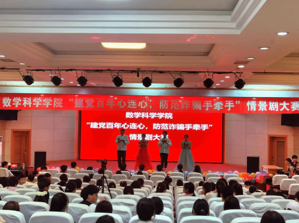 为庆祝建党一百周年,防范诈骗犯罪活动,关注学生心理健康。数学科学学院于5月13日下午在图教201举办“建党百年心连心,防范诈骗手牵手”心理剧大赛。