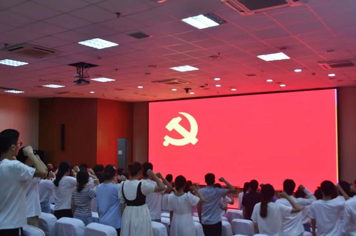 活动结束后,学院党委书记任建成带领全体党员,面对党旗,重温入党誓词。