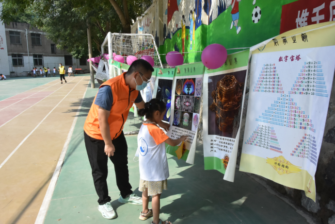 活动现场使用数学游戏、图片、诗词、趣题、谜语、条幅等宣传数学文化。孩子们通过精彩纷呈的“数学游戏”、劲爆趣味的“数学猜谜”、方法多样的“趣题妙解”、千变万化的“数学图片”、引人入胜的“数学诗词”等主题活动,丰富数学知识,激发学习兴趣,启迪数学思维,感受数学魅力,从而获得数学学习的积极情感体验,提升科学素养。