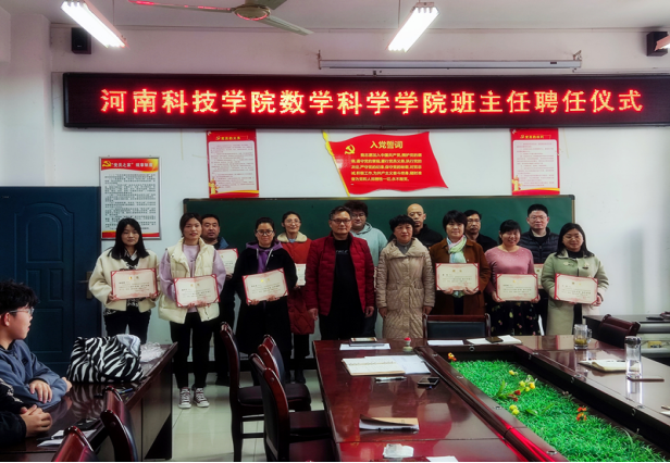 为全面加强对学生的教育引导,充分发挥广大教师在学生教育培养中的主导作用。3月3日下午,数学科学学院在学院会议室举行班主任聘任仪式。学院党政领导班子成员、辅导员、受聘班主任和各班班长参加会议。会议由院党委副书记李军民主持。