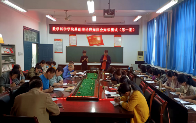 为扎实开展党的创新理论学习,巩固党史学习教育成果,进一步提升教职工政治理论水平,4月21日下午,数学科学学院党委在学院会议室开展党的基本理论应知应会知识测试。学院全体教职工参加本次活动。