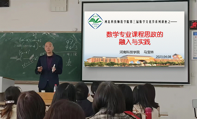 8日上午,马宝林为该校数学专业教师做了关于“数学专业课程思政的融入与实践”的报告。下午,在该校学术报告厅为全校师生做了关于“推开数学之门”的学术报告。马宝林以典型案例入手,深入浅出,风格独特,将数学与国学、文化与思政融合,既展现数学的多面和灵活,又强调数学的和谐与优美,让师生们开阔了眼界,打破了思维,使课堂“活”起来,让同学们对数学有了深层次的认知,从而体会到数学的魅力。