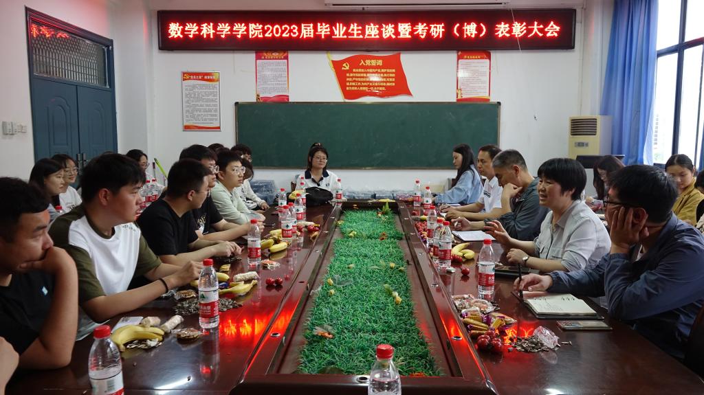 5月30日下午,数学科学学院在学院会议室召开2023届毕业生座谈暨考研表彰大会。学院领导班子成员、辅导员、考取研究生代表、毕业生代表及低年级学生代表40余人参加本次会议。会议由院团委书记、2023届毕业生辅导员贾普君主持。