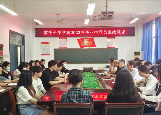 为深入开展学习贯彻习近平新时代中国特色社会主义思想主题教育,不断增强毕业生党员廉洁自律意识。6月2日下午,数学科学学院在学院会议室开展2023届毕业生党员廉洁教育。全体毕业生党员和在校生党员代表参加会议,会议由院党委副书记马宝林主持。