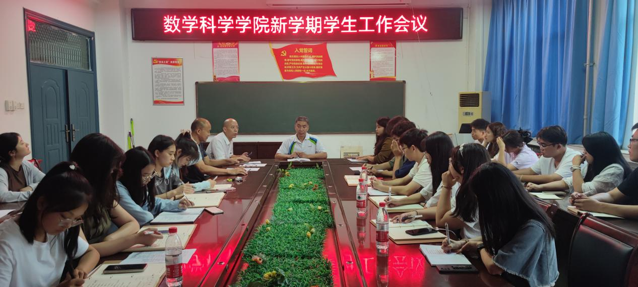 为做好新学期各项学生工作,9月3日下午,数学科学学院在8号楼303会议室召开新学期学生工作会议。学院党委书记李军民、党委副书记马宝林、全体辅导员及全体学生干部参加了此次会议。