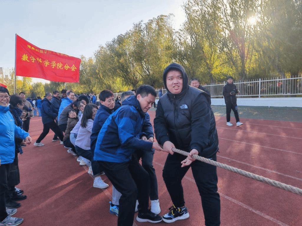在气排球比赛中,各教研室代表队奋力拼搏,通过团结协作,展现了良好的团队精神。乒乓球比赛中,老师们挥汗如雨,用高超的球技展示了数学科学学院的风采。1分钟定点投篮和1分钟踢毽子的项目则考验了参与者的精准度和反应能力,展现了大家在运动中的灵活机智。而最激烈的莫过于拔河比赛,代表队紧密协作,用力拔起沉重的绳索,不仅锻炼了身体力量,更锤炼了团队合作的默契。