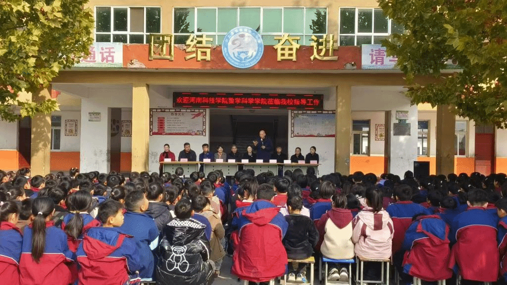 11月22日,数学科学学院领导班子带领数学文化团队成员前往封丘县黄陵镇中心小学开展河南科技学院“数学文化节”走进小学活动。数学科学学院党委书记李军民、院长董瑞、党委副书记马宝林、闫庄驻村书记方强、黄陵镇党委副书记邹婷婷,副镇长张修敏、中心小学负责人等出席。活动由方强主持。