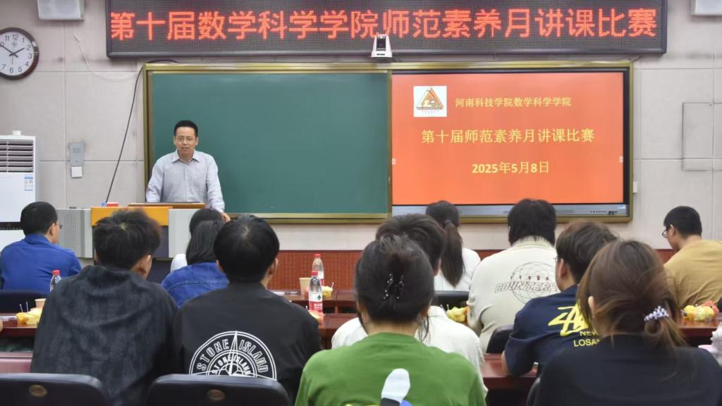 5月8日,数学科学学院于6503教室举办了第十届师范技能月讲课大赛决赛。新乡学院附属中学教研组组长宋艳梅、新乡市第十八中副校长崔连根、新乡市第十中学副校长魏艳红、新乡一中孙福祥老师以及我院副院长陈玉珍,教师代表陆博、赵婷、魏伟平担任评委。