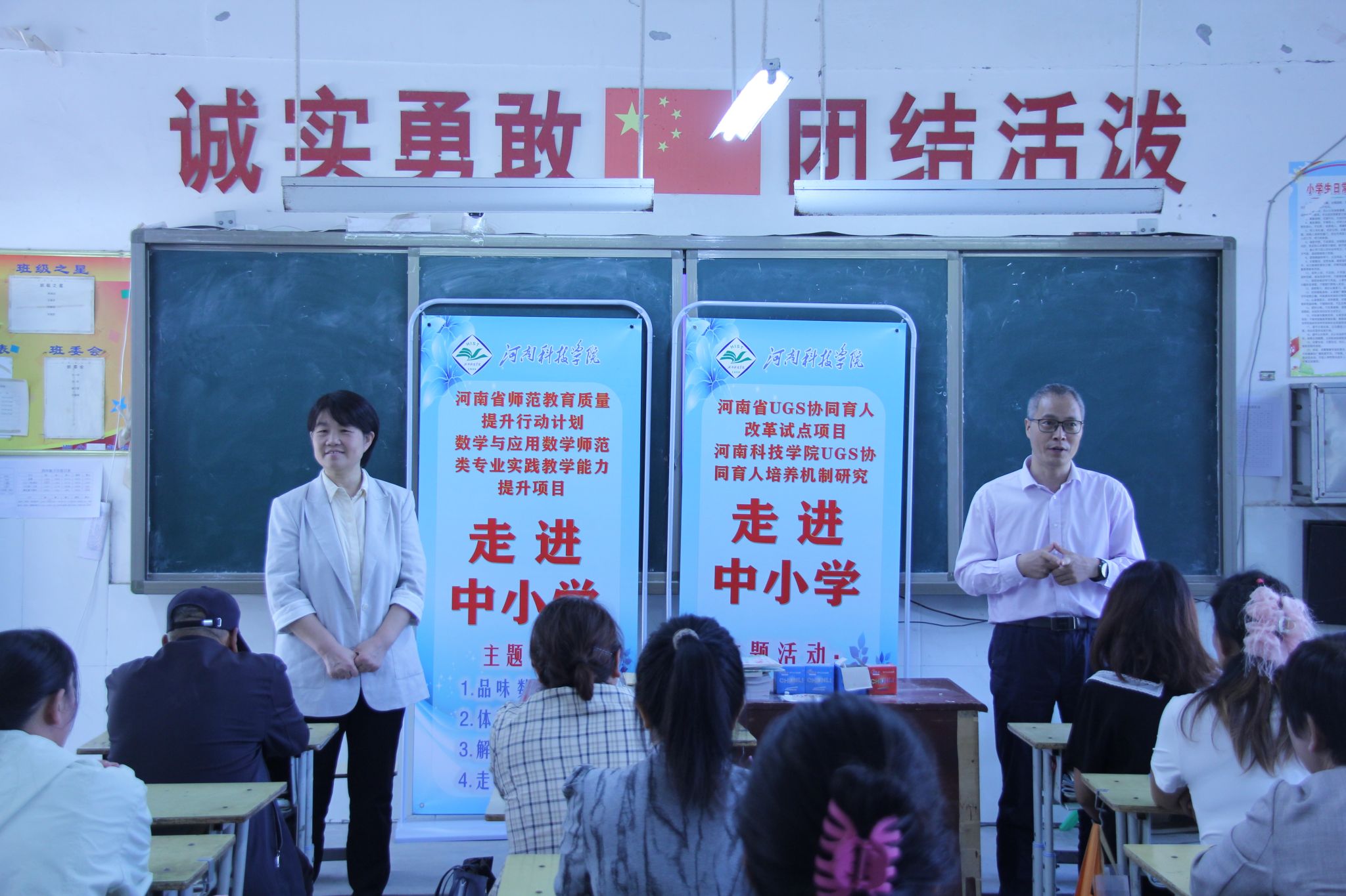 9月25日,数学科学学院领导班子带领数学文化团队成员前往封丘县黄陵镇旧黄陵村小学开展河南科技学院“文化助力乡村振兴”数学文化进校园系列活动。教务处处长杨宾峰、驻村第一书记陈利、数学科学学院党委书记李军民、院长董瑞、党委副书记马宝林、旧黄陵村小学负责人等出席。活动由陈利主持。