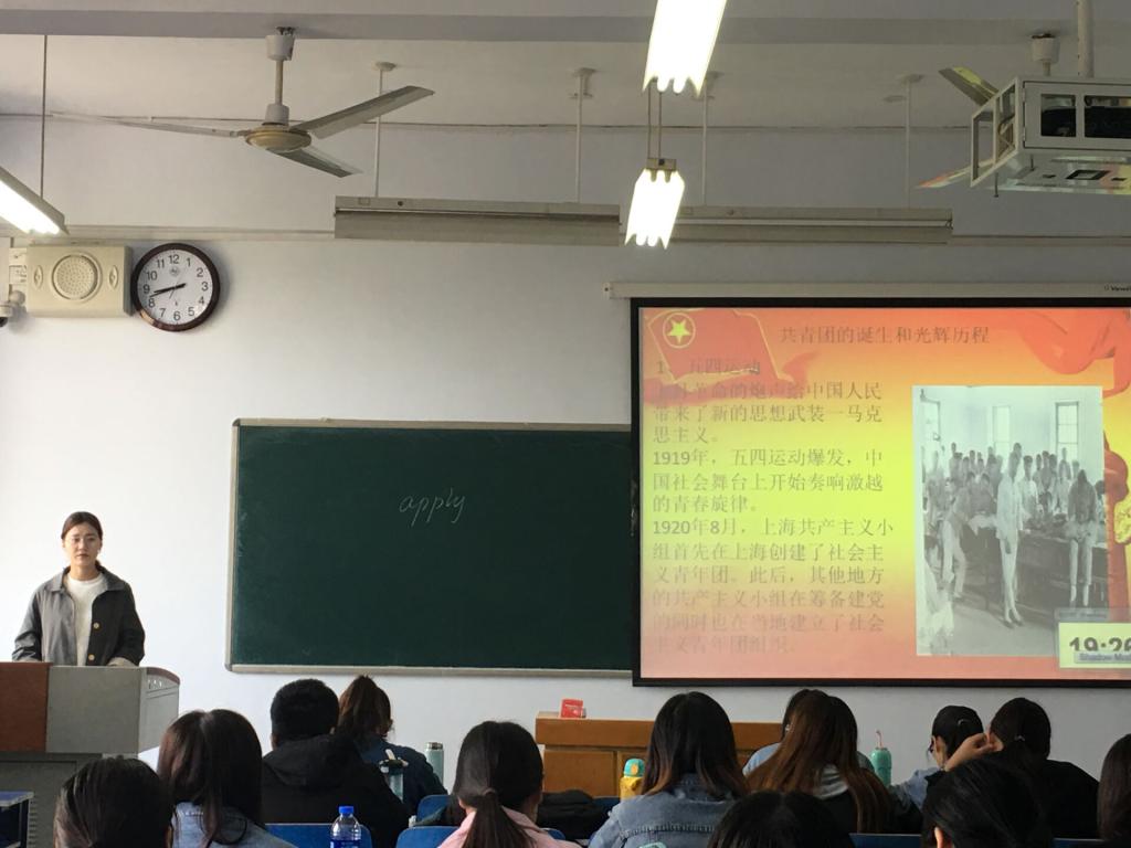 为进一步引导广大青年学生继承和发扬“五四精神”并纪念五四运动一百周年。4月29日,外国语学院开展“不忘初心,薪火相传”主题微团课活动。在五四运动一百周年之际,各班团支书用微团课的形式与同学们共同度过了一个“特殊”的青年节。