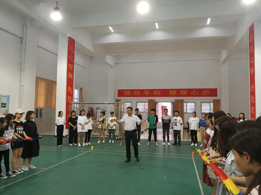 根据我校“5.25大学生心理健康教育月”活动通知要求,5月21日下午,外国语学院“不忘初心,青春助力”大学生心理素质拓展活动在大学生心理健康教育与指导中心素质拓展大厅举行,院团委书记张高峰及全体团学干部参加活动。