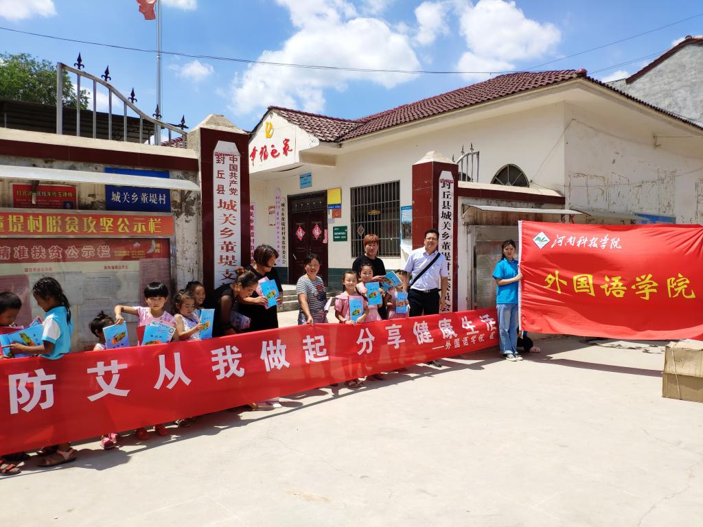 为进一步提高广大人民群众对毒品、艾滋病危害的认识水平和自我防范意识,引导我院青年学生在社会实践中受教育、长才干、做贡献。7月6日上午,外国语学院青少年“禁毒防艾”宣传服务团走进封丘县董堤村、闫庄村和长垣县前寺谷村开展宣讲活动。