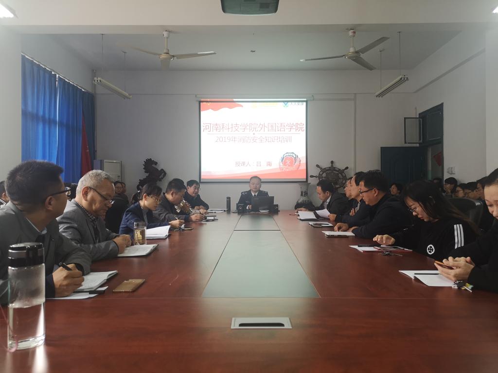 为认真学习贯彻习近平总书记关于安全生产、应急管理、减灾救灾的重要论述,切实提高广大师生的消防安全意识和安全技能。10月17日下午,外国语学院2019年消防安全培训在7211会议室举行,特邀新乡市消防宣传专职教员,消防志愿者杰出青年吕南做了消防安全培训,学院全体教职工70余人参加了培训。