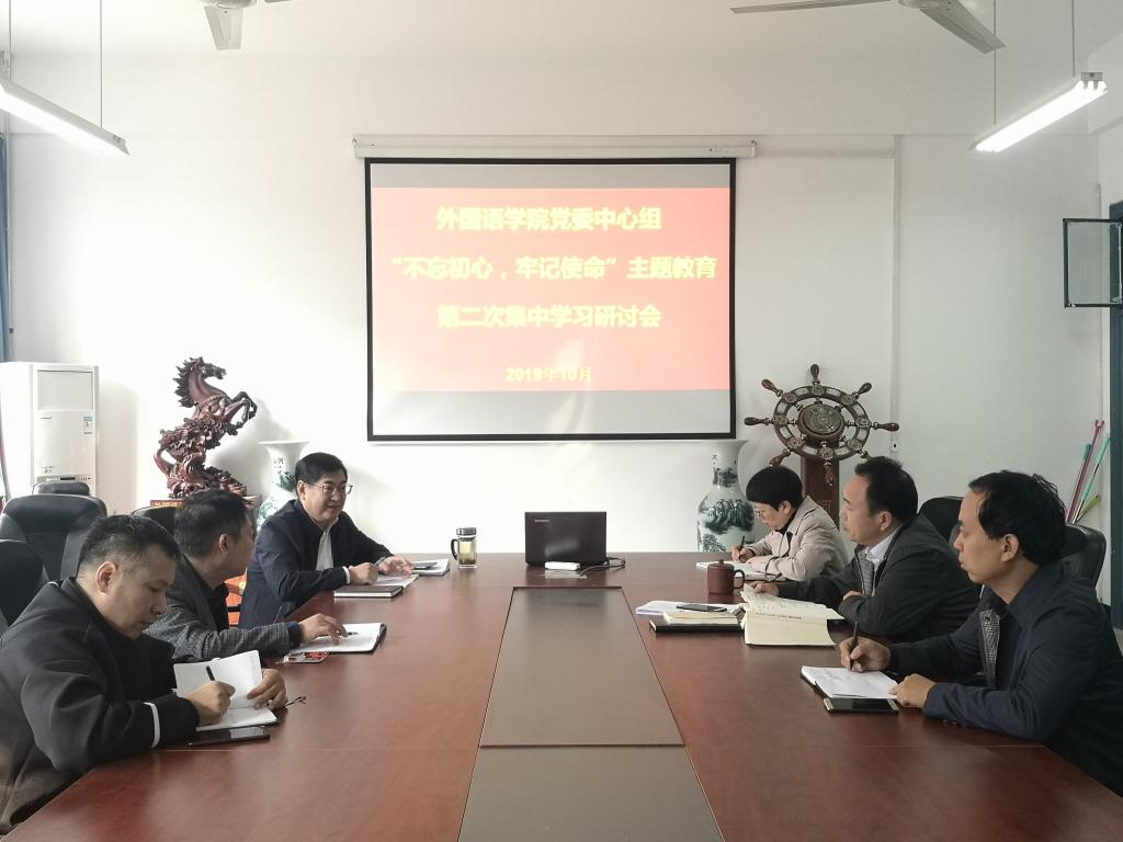 10月17日-18日,外国语学院党委理论学习中心组在7211会议室进行“不忘初心、牢记使命”主题教育第二次集中学习研讨。学习研讨会由院党委书记徐兆栋主持。