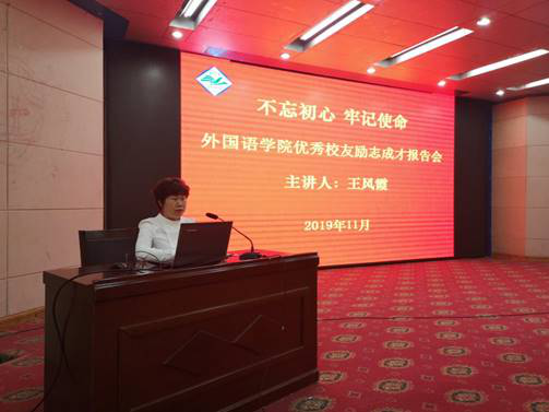 为使“不忘初心、牢记使命”主题教育不断引向深入,根据计划安排,11月1日—3日,外国语学院在图教201报告厅举办了优秀校友励志成才报告会。报告会邀请了经贸英语专业2004届校友、义乌市万搜进出口有限公司总经理王风霞和英语专业2008届校友、河南财经政法大学国际教育学院团委书记张晓静博士,外国语学院部分师生300余人参加了报告会。