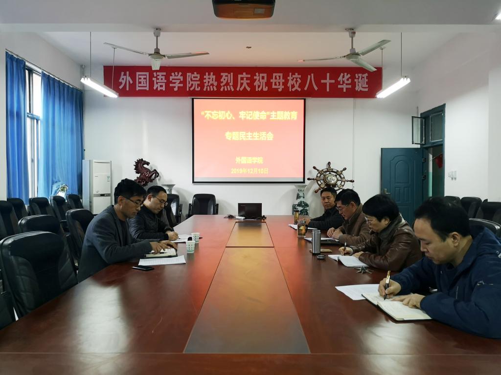 12月10日上午,外国语学院“不忘初心、牢记使命”主题教育专题民主生活会在7号教学楼211会议室召开。校第四督促指导组副组长方强、组织部吴昊与会指导,学院全体处级干部参加会议。