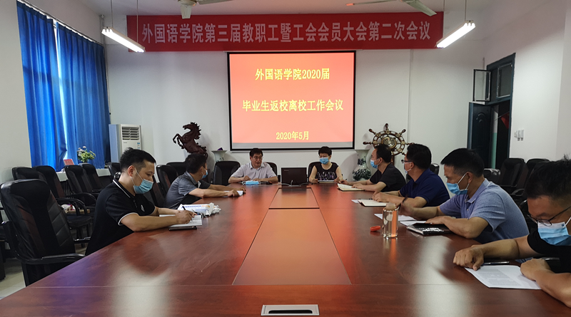 为做好2020届毕业生返校离校工作,5月29日下午,外国语学院在7#211会议室召开毕业生返校离校会议,学院党委书记徐兆栋,院长赵颖,党委副书记龚俊朋,副院长李会民出席会议,学院办公室主任、专兼职辅导员、学生党支部书记等参加了会议。