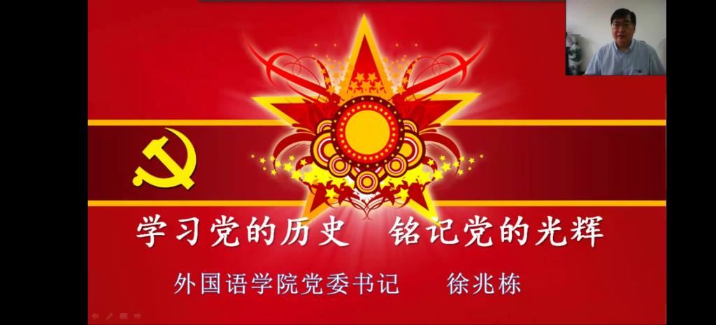 以纪念建党99周年为契机,结合“牢记初心使命、争当出彩先锋”主题,7月10日下午,外国语学院党委书记徐兆栋在钉钉直播讲授“学习党的历史、铭记党的光辉”专题微党课,我院全体教工党员观看了直播。