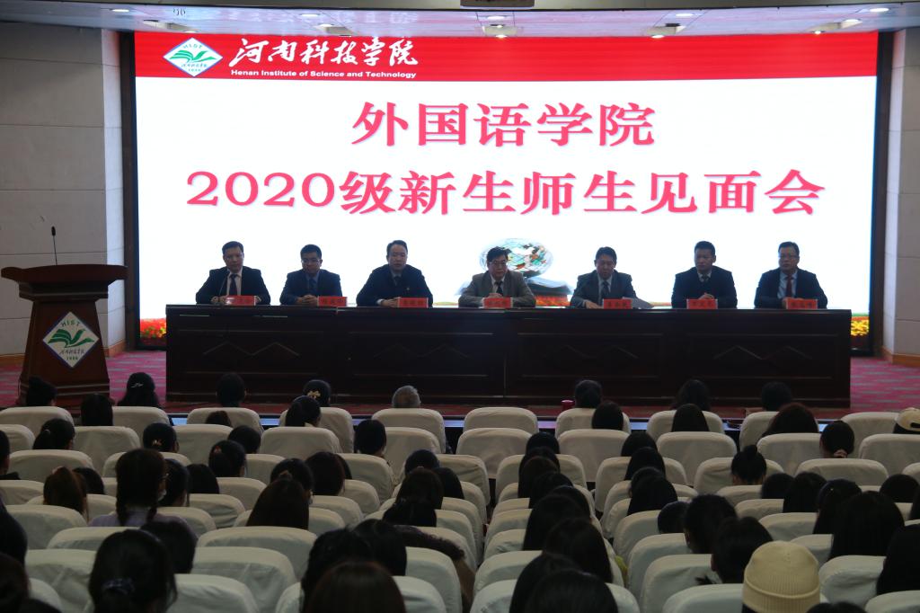 10月27日中午,外国语学院2020级新生师生见面会在图教201召开。外国语学院党委书记徐兆栋,院长李会民,副书记龚俊朋,副院长万文龙、程建锋出席,学院教师代表、高年级学生代表及2020级全体新生参加了见面会。