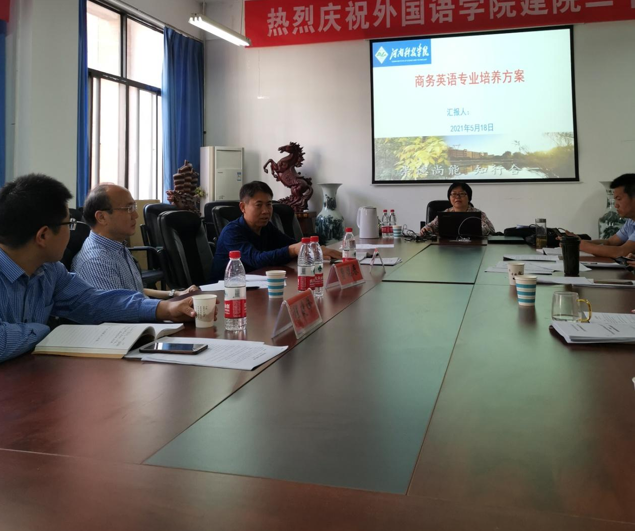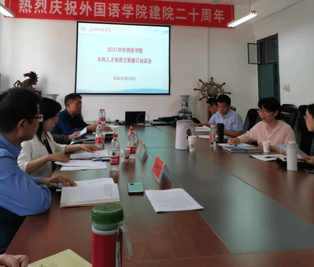 5月18日下午,我院英语专业人才培养方案论证会在7号楼211会议室召开。河南师范大学外国语学院张志强教授,新乡学院外国语学院院长李艳叶教授,华北水利水电大学国际教育学院院长曹德春教授,外国语学院院长李会民,副院长万文龙、程建锋,各教研室负责人及学院学术委员会成员参加了本次论证会。