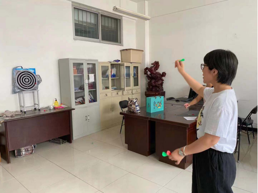 趣味运动会分为六个小组,设置了乒乓球、投飞镖、羽毛球、跳大绳、踢毽子、托乒乓球等比赛项目。活动中,老师在分会组长带领下分组进行活动,天气虽然炎热,但是老师们个个精神抖擞,热情不减。比赛中大家齐心协力,互相帮助,各展其能,趣味运动会在一片欢乐、和谐的气氛中圆满结束。