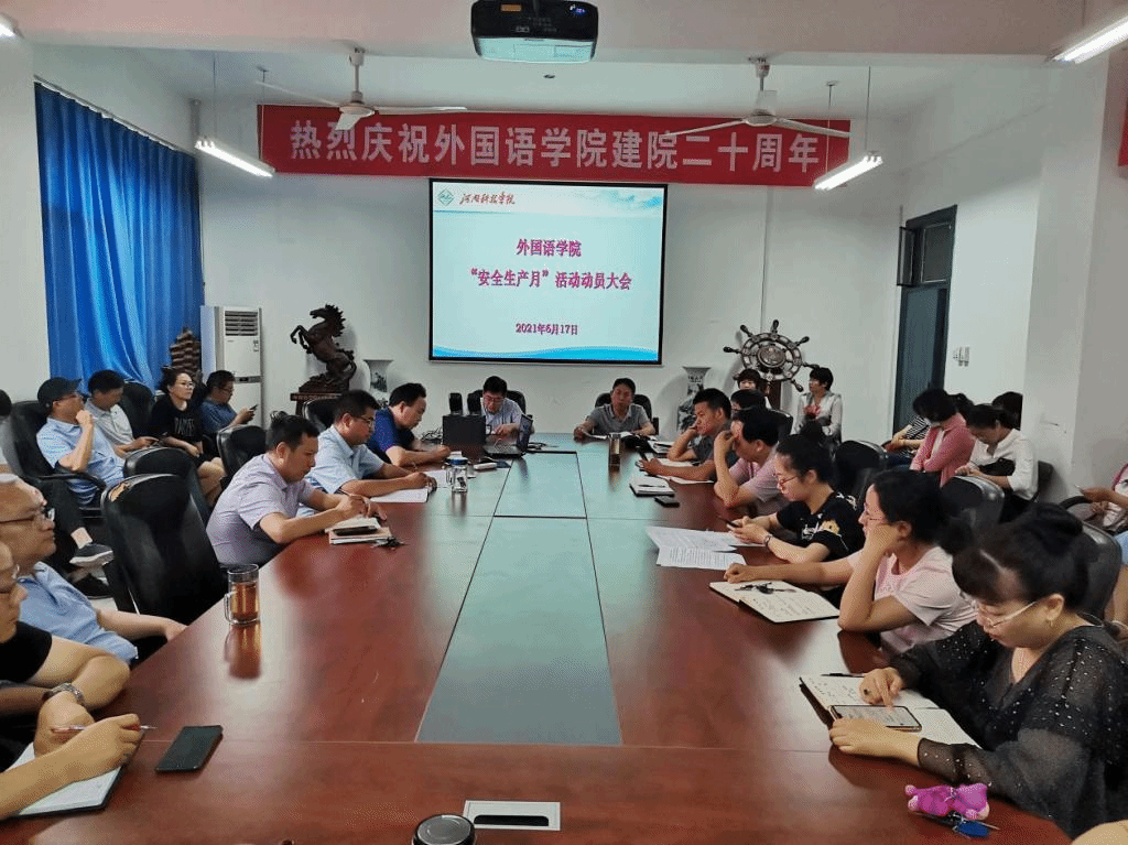 根据学校2021年“安全生产月”活动的工作安排,6月17日下午,外国语学院在7#211会议室召开安全工作会议,安排部署“安全生产月”活动有关工作,学院全体教职工参加会议。